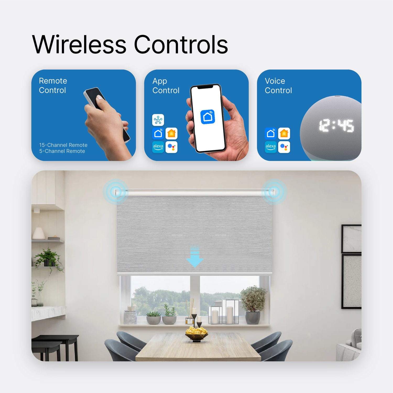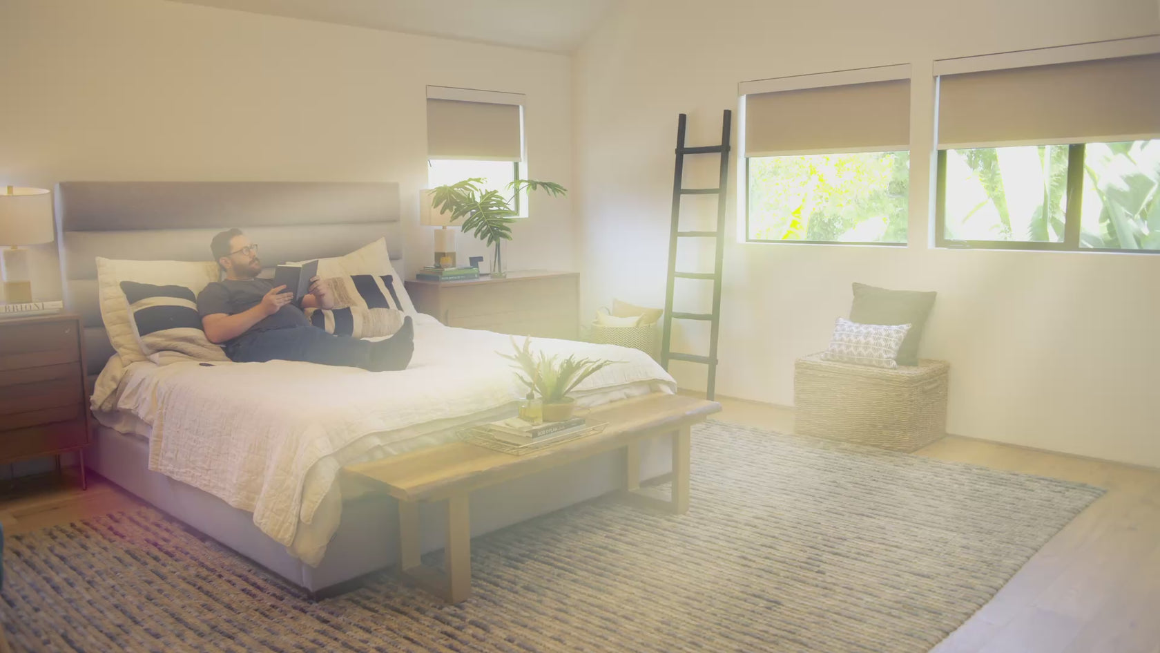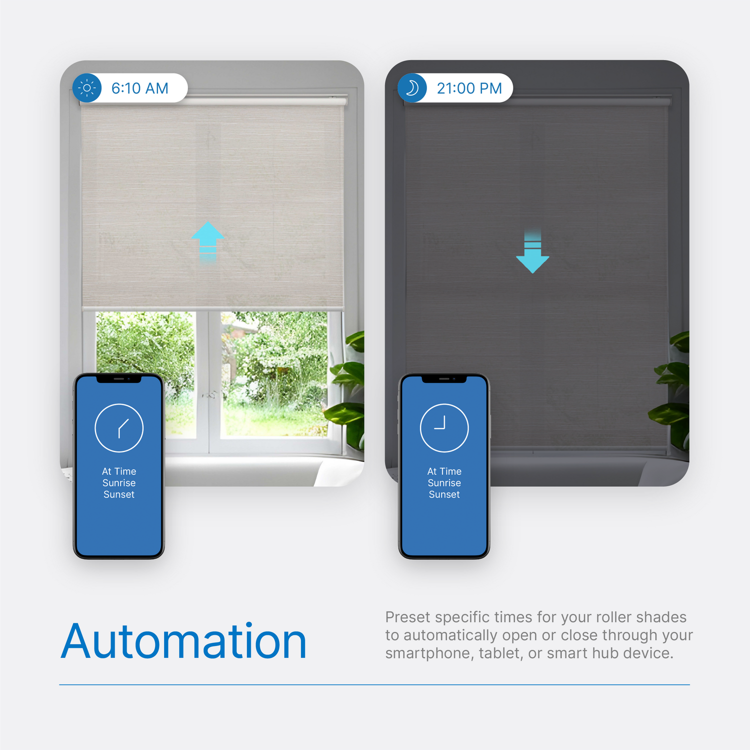 Set blackout scenes for sleep, focus, or movie time. Use the remote, app, or voice assistant to drop your shades in an instant — no cords, no effort.