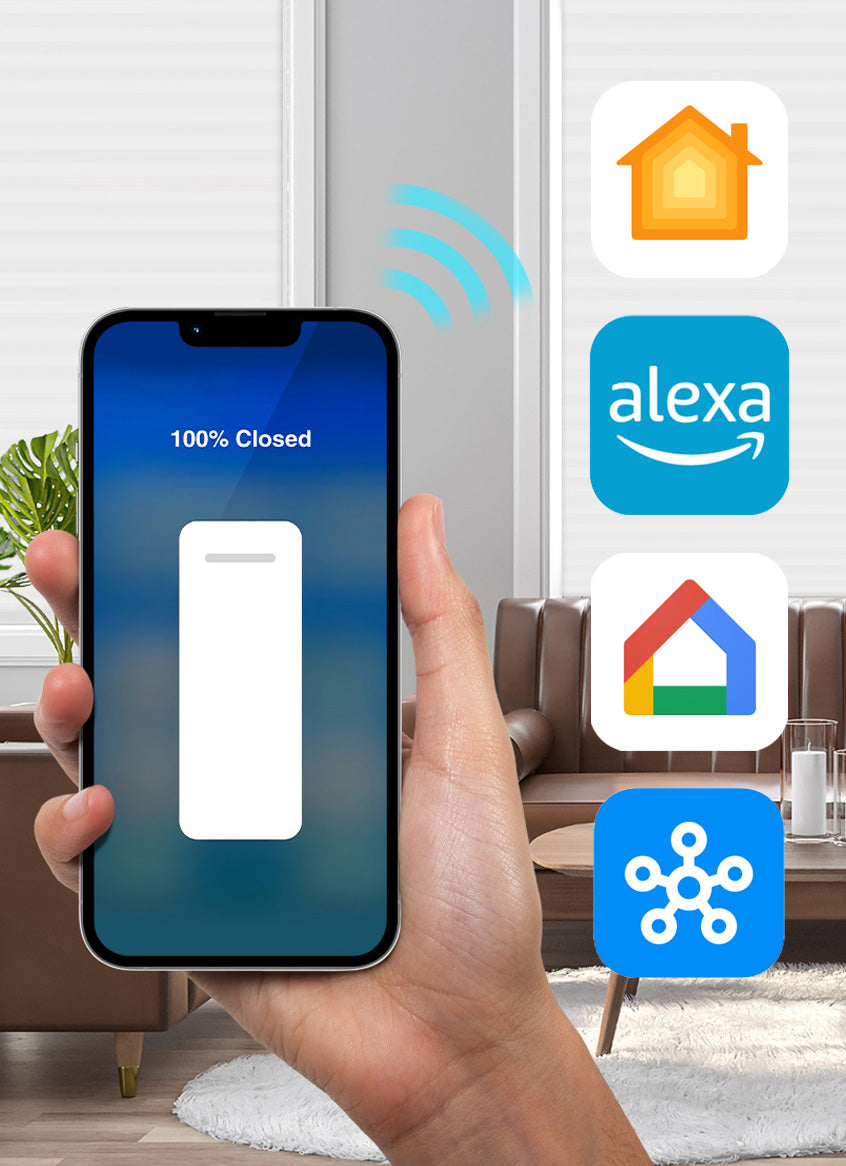 ![]()  - Connects with SmartThings via Zigbee. Create automated schedules and control your blinds from your smartphone.
