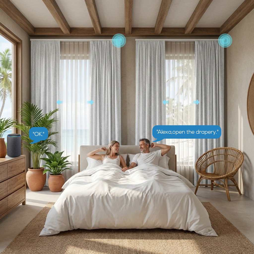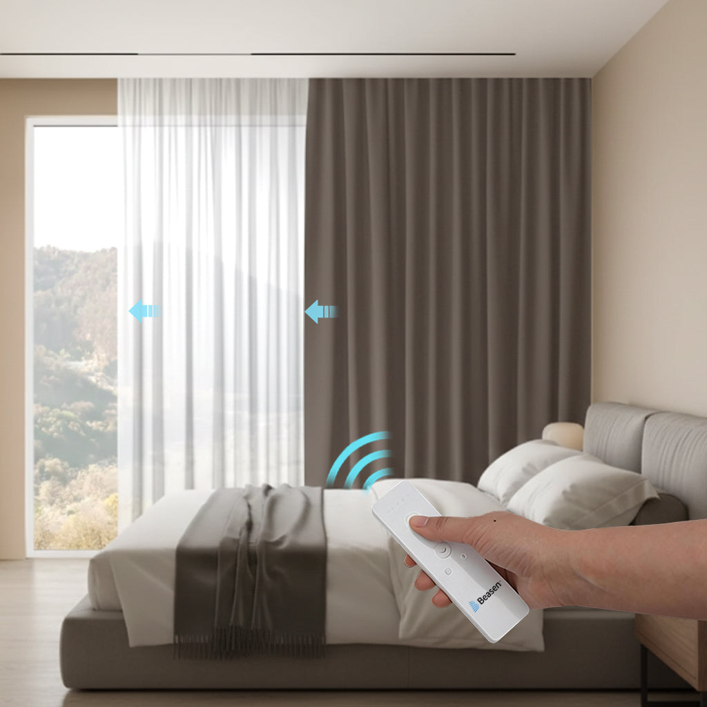 Beasen motorized drapery tracks deliver smooth, quiet movement with precise control. Gentle start and stop, automatic limit setting, and smart-home compatibility ensure effortless operation that fits seamlessly into modern living.