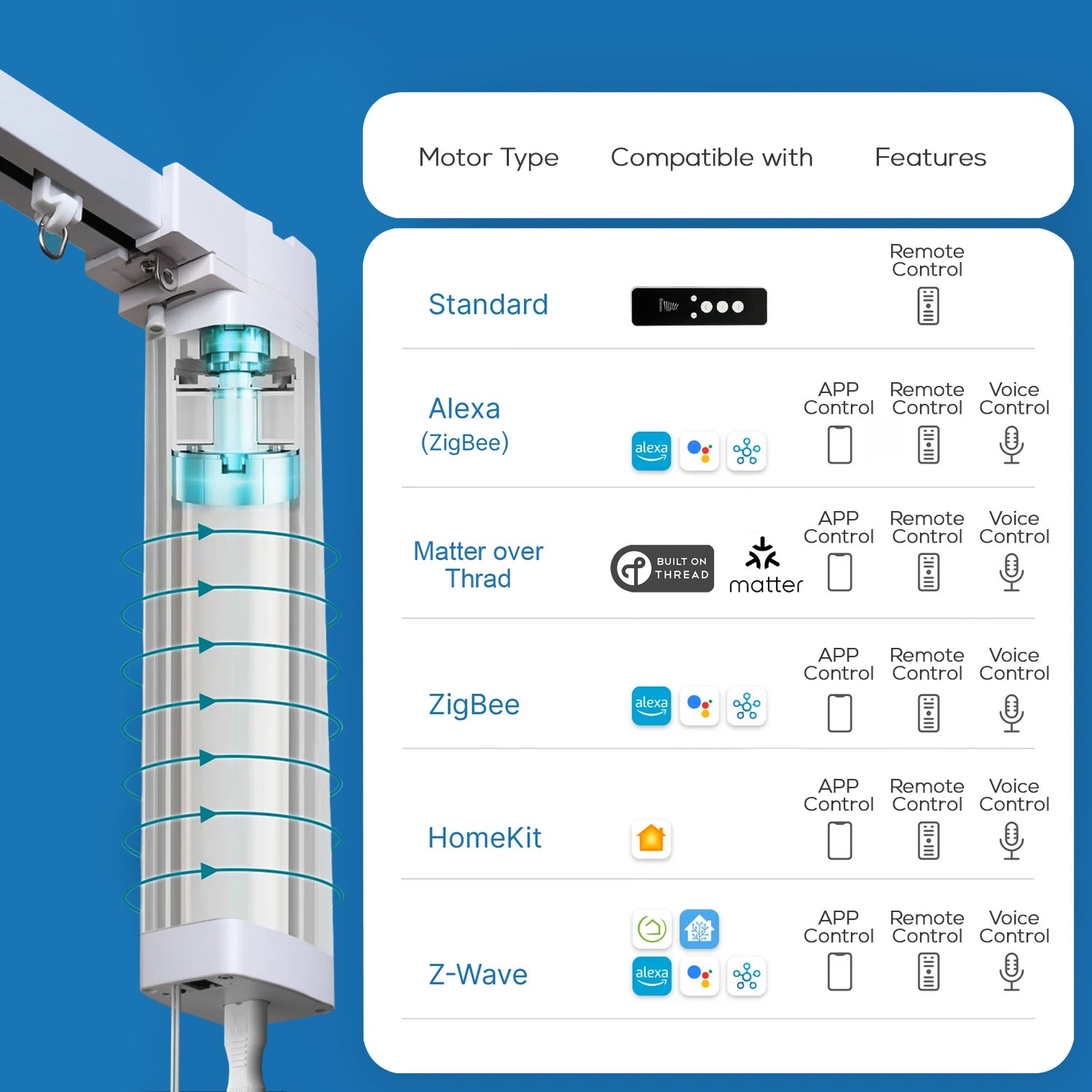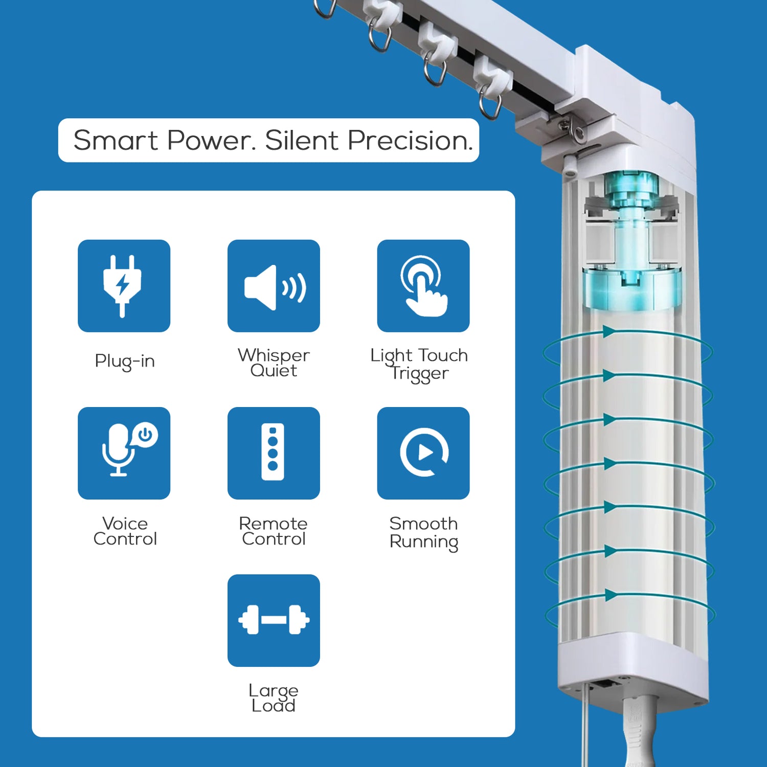 Smooth, cord free operation for modern spaces. Open or close with voice, remote, or app for a clean and effortless look.