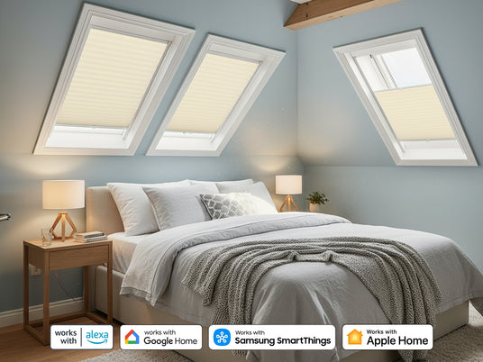 Engineered for skylights, Beasen cellular shades reduce glare, improve insulation, and deliver smooth, quiet motorized control for effortless overhead light management.