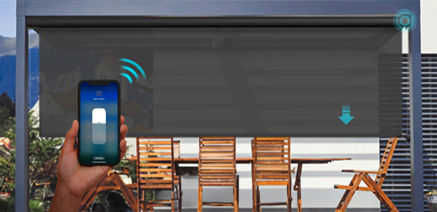 Smart Motorized Outdoor Shades 5% Openness - Dark Grey is backordered and will ship as soon as it is back in stock.